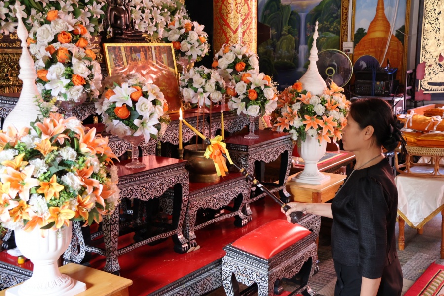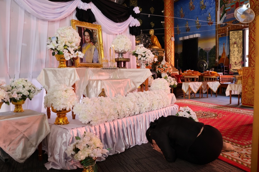 นางวาสนา บุญธรรมช่วย นายอำเภอสันป่าตอง ร่วมกับ นายยุทธ คำแปง นายกเทศมนตรีตำบลยุหว่า คณะผู้บริหารฯ ส.ต.อ.หญิงพรรณทิพย์ โกสีย์ศิริกุล ปลัดเทศบาลตำบลยุหว่า หัวหน้าส่วนราชการ พนักงานเจ้าหน้าที่ฯ พร้อมผู้นำชุมชน และประชาชนตำบลยุหว่า เข้าร่วมพิธีบำเพ็ญกุศลทักษิณานุปทานอุทิศถวายพระราชกุศล สมเด็จพระนางเจ้าสิริกิติ์ พระบรมราชินีนาถ พระบรมราชชนนีพันปีหลวง ณ วัดศรีเกิด ม.8 ตำบลยุหว่า อำเภอสันป่าตอง จังหวัดเชียงใหม่