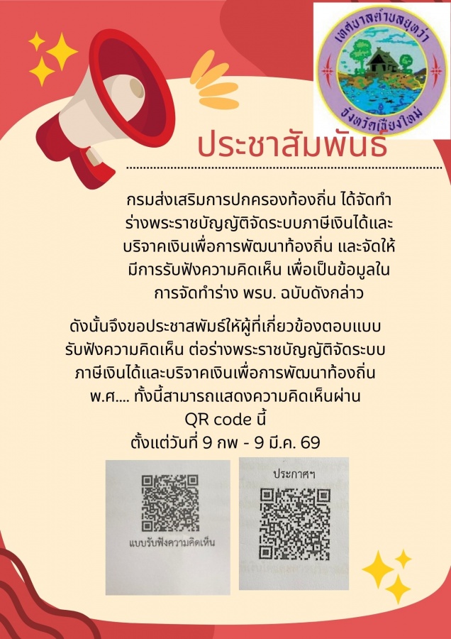 ประชาสัมพันธ์ผู้ที่เกี่ยวข้องตอบแบบรับฟังความคิดเห็น ต่อร่างพระราชบัญญัติจัดระบบภาษีเงินได้และบริจาคเงินเพื่อการพัฒนาท้องถิ่น พ.ศ.....
