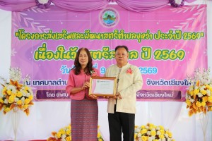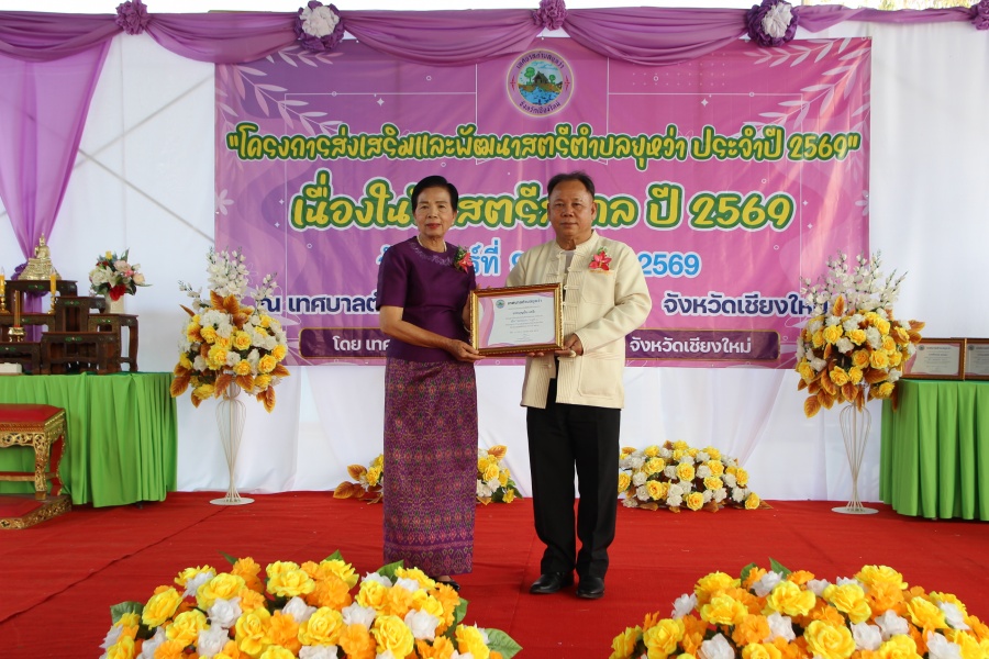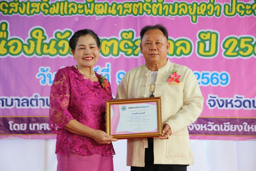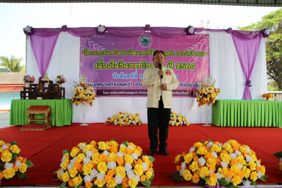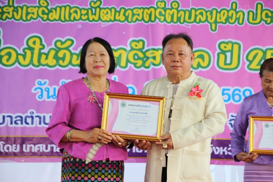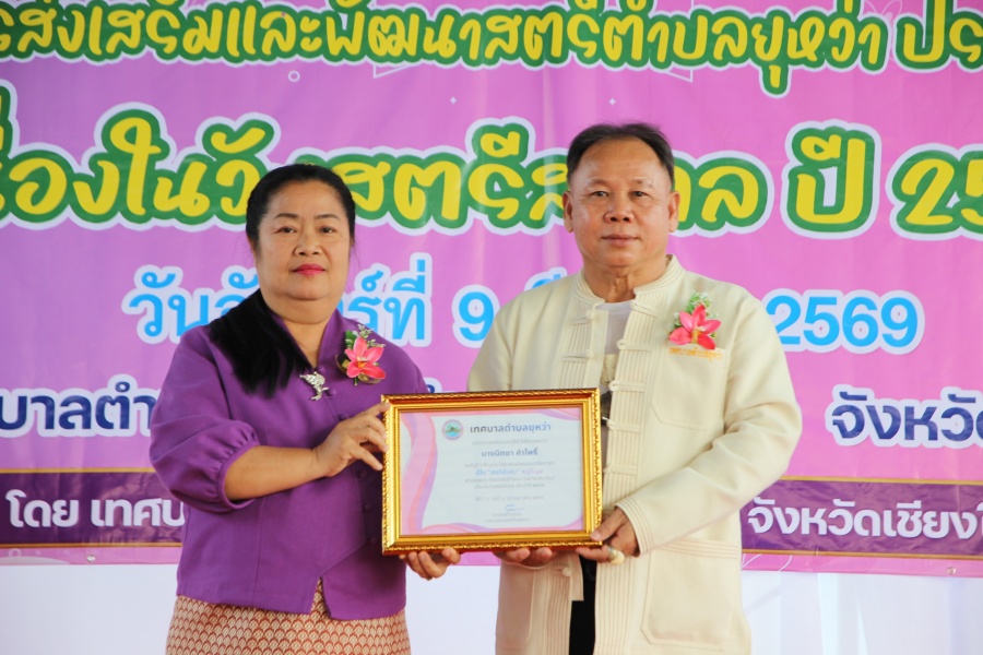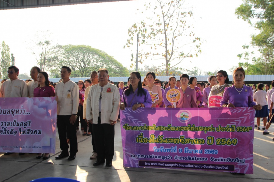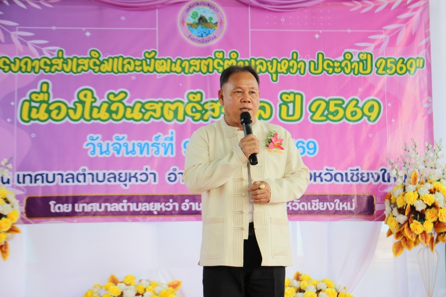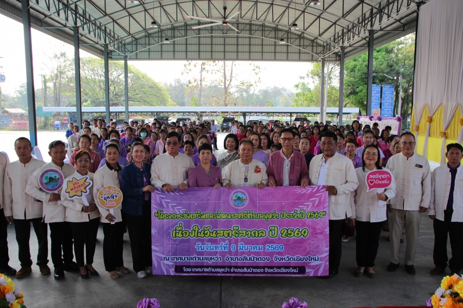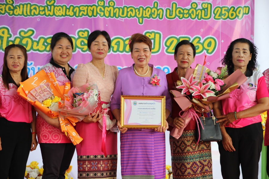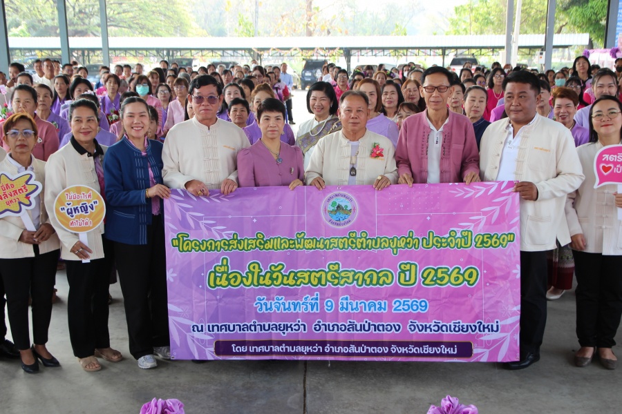 นายยุทธ คำแปง นายกเทศมนตรีตำบลยุหว่า(ประธานในพิธี) คณะผู้บริหารฯ นายบุญเจือ เชียงบุญ ประธานสภาเทศบาลตำบลยุหว่า สมาชิกสภาฯ ร่วมกับผู้นำชุมชนทุกหมู่บ้านและแขกผู้มีเกียรติ ร่วมแสดงความยินดีกับสตรีดีเด่น 14 หมู่บ้าน ในโครงการส่งเสริมและพัฒนาสตรีตำบลยุหว่า ประจำปี 2569 (เนื่องในวันสตรีสากล) ณ อาคารเจ้าแม่บัวเขียว สำนักงานเทศบาลตำบลยุหว่า