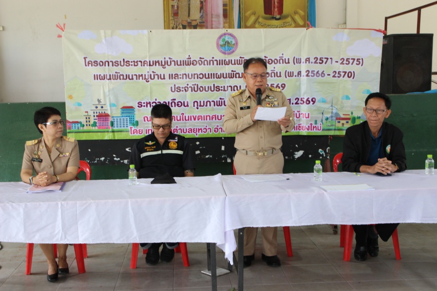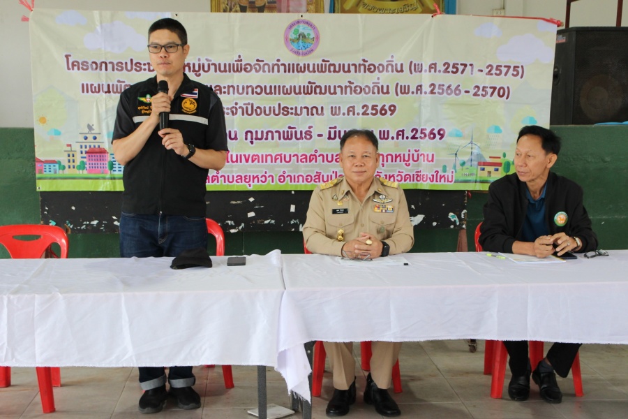 นายยุทธ คำแปง นายกเทศมนตรีตำบลยุหว่า คณะผู้บริหารฯ ส.ต.อ.หญิงพรรณทิพย์ โกสีย์ศิริกุล ปลัดเทศบาลตำบลยุหว่า นายบุญเจือ เชียงบุญ ประธานสภาเทศบาลตำบลยุหว่า สมาชิกสภาฯ พร้อมด้วยนายสุทธิวัฒน์ วิยะศรี ผู้ใหญ่บ้าน ม.4 บ้านกิ่วแลหลวง และประชาชนบ้านกิ่วแลหลวง เข้าร่วมโครงการประชาคมหมู่บ้านเพื่อจัดทำแผนพัฒนาท้องถิ่น (พ.ศ.2571 - 2575) แผนพัฒนาหมู่บ้าน และทบทวนแผนพัฒนาท้องถิ่น (พ.ศ.2566 - 2570) ประจำปีงบประมาณ พ.ศ. 2569 ณ อาคารระวิวรรณ ม.4