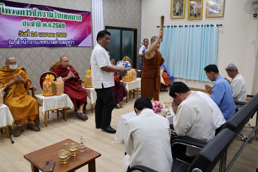 นายยุทธ คำแปง นายกเทศมนตรีตำบลยุหว่า ประธานสภาฯ สมาชิกสภาฯ ส.ต.อ.หญิงพรรณทิพย์ โกสีย์ศิริกุล ปลัดเทศบาลตำบลยุหว่า หัวหน้าส่วนราชการ พนักงานเจ้าหน้าที่เทศบาลตำบลยุหว่า คณะครูโรงเรียนในสังกัดเทศบาลตำบลยุหว่า เข้าร่วมพิธีทำบุญถวายภัตตาหารเช้าแด่พระสงฆ์ จำนวน 5 รูป พร้อมถวายจตุปัจจัยไทยทาน และร่วมรดน้ำอุทิศส่วนกุศลเพื่อความเป็นสิริมงคลเนื่องในวันเทศบาล ซึ่งตรงกับวันที่ 24 เมษายนของทุกปี ณ ห้องประชุมเทศบาลตำบลยุหว่า และร่วมกิจกรรมบำเพ็ญประโยชน์ เก็บขยะรอบหนองสะเรียม