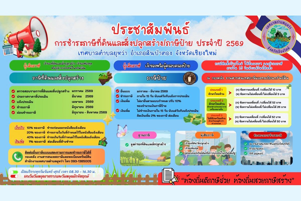 วันพฤหัสบดี ที่ 15 มกราคม พ.ศ. 2569 เวลา 13.30 น. นายยุทธ คำแปง นายกเทศมนตรีตำบลยุหว่า นายธีรพงค์ กอนแก้ว รองนายกเทศมนตรีตำบลยุหว่า ร่วมกับ นางวาสนา บุญธรรมช่วย นายอำเภอสันป่าตองพร้อมคณะ บุคลากรโรงพยาบาลสันป่าตอง โรงพยาบาลส่งเสริมสุขภาพตำบลบ้านกิ่วแลหลวง คณะครู นักเรียนโรงเรียนสันป่าตองวิทยาคม(อย.น้อย) และ อสม.ในพื้นที่ตำบลยุหว่า ร่วมให้การต้อนรับเภสัชกรเลิศชาย เลิศวุฒิ รองเลขาธิการคณะกรรมการอาหารและยา ในการเยี่ยมเสริมพลัง เครือข่าย บวร.ร. จังหวัดเชียงใหม่ ปีงบประมาณ พ.ศ. 2569 ณ อาคารศูนย์ส่งเสริมอัจฉริยภาพทางปัญญา พระพรหมมงคล วิ.(หลวงปู่ทอง สิริมงคโล) ประจำอำเภอสันป่าตอง โรงเรียนสันป่าตองวิทยาคม
