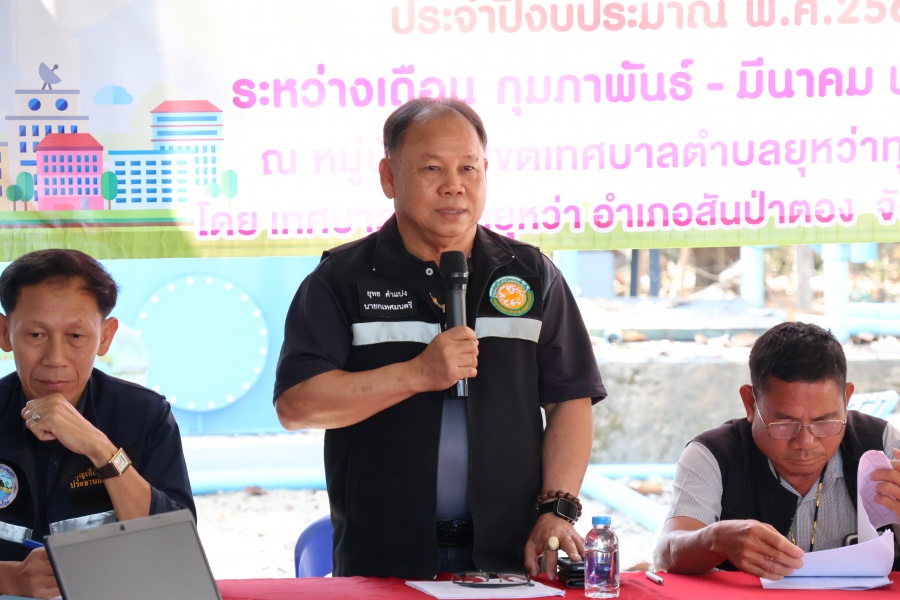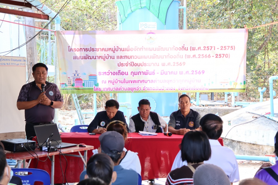 นายยุทธ คำแปง นายกเทศมนตรีตำบลยุหว่า คณะผู้บริหารฯ ส.ต.อ.หญิงพรรณทิพย์ โกสีย์ศิริกุล ปลัดเทศบาลตำบลยุหว่า นายบุญเจือ เชียงบุญ ประธานสภาเทศบาลตำบลยุหว่า สมาชิกสภาฯ พร้อมด้วยนายนายวิโรจน์ สุจา ผู้ใหญ่บ้าน ม.15 บ้านหนองสะเรียม และประชาชนบ้านหนองสะเรียม เข้าร่วมโครงการประชาคมหมู่บ้านเพื่อจัดทำแผนพัฒนาท้องถิ่น (พ.ศ.2571 - 2575) แผนพัฒนาหมู่บ้าน และทบทวนแผนพัฒนาท้องถิ่น (พ.ศ.2566 - 2570) ประจำปีงบประมาณ พ.ศ. 2569 ณ อาคารหอประชุมหมู่บ้าน(ประปาหมู่บ้าน) หมู่ที่ 15 บ้านหนองสะเรียม