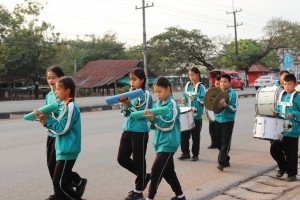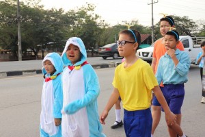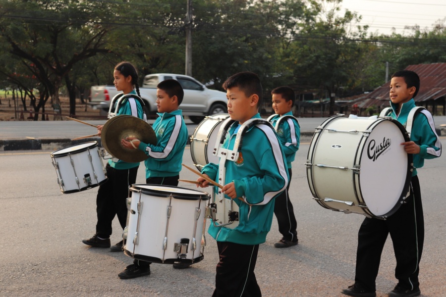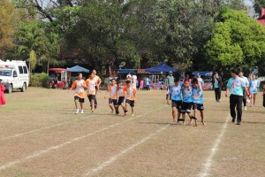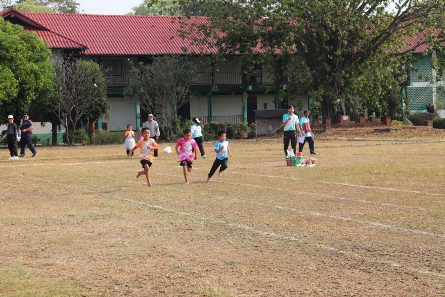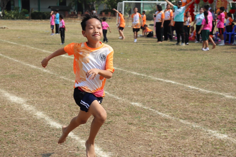 ให้กำลังใจน้อง ๆ นักเรียน ในการแข่งขันกีฬาสีแต่ละประเภท