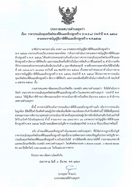 ประจำปี พ.ศ. 2569 ตามพระราชบัญญัติภาษีที่ดินและสิ่งปลูกสร้าง พ.ศ. 2562