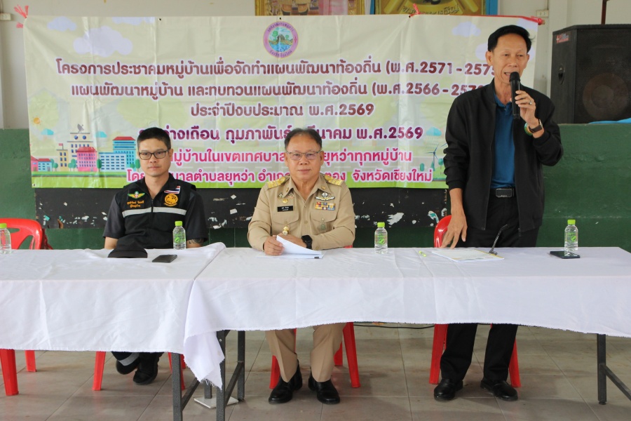 นายยุทธ คำแปง นายกเทศมนตรีตำบลยุหว่า คณะผู้บริหารฯ ส.ต.อ.หญิงพรรณทิพย์ โกสีย์ศิริกุล ปลัดเทศบาลตำบลยุหว่า นายบุญเจือ เชียงบุญ ประธานสภาเทศบาลตำบลยุหว่า สมาชิกสภาฯ พร้อมด้วยนายสุทธิวัฒน์ วิยะศรี ผู้ใหญ่บ้าน ม.4 บ้านกิ่วแลหลวง และประชาชนบ้านกิ่วแลหลวง เข้าร่วมโครงการประชาคมหมู่บ้านเพื่อจัดทำแผนพัฒนาท้องถิ่น (พ.ศ.2571 - 2575) แผนพัฒนาหมู่บ้าน และทบทวนแผนพัฒนาท้องถิ่น (พ.ศ.2566 - 2570) ประจำปีงบประมาณ พ.ศ. 2569 ณ อาคารระวิวรรณ ม.4