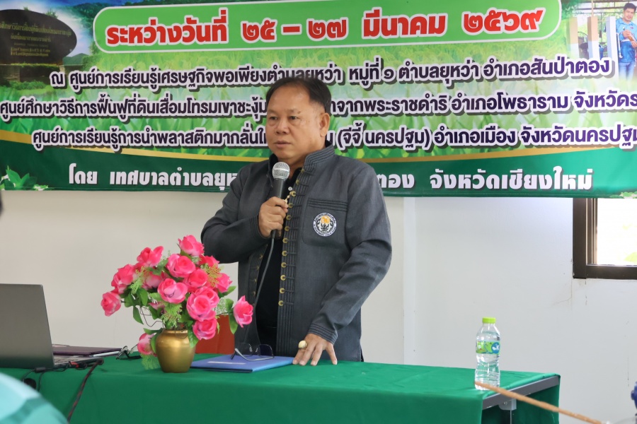 โดยบรรยายเรื่อง ?การบริหารกำจัดขยะในพื้นที่เกษตรกรรม และในพื้นที่ตำบลยุหว่าเพื่อลดต้นทุนในการผลิตด้านเกษตรกรรม และสามารถนำมาทำเป็นอาชีพเสริมรายได้นอกภาคเกษตรกรรม? วิยากรโดย นายฐิติศักดิ์ กัญจน์กษิดิส ผู้อำนวยการกองสาธารณสุขและสิ่งแวดล้อม เทศบาลตำบลสันผักหวาน อ.หางดง จ.เชียงใหม่